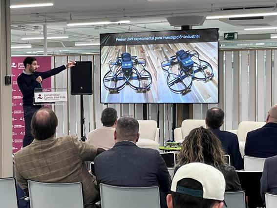 Uno de los momentos más destacados del evento fue la presentación de un UAV (Vehículo Aéreo No Tripulado, por sus siglas en inglés), de Hoovering, empresa tecnológica colaboradora del proyecto. Tener un UAV en la sala, como los utilizados en el proyecto, permitió a los asistentes conocer de primera mano sus capacidades. El experto de Hoovering, presentó las capacidades de control y su potencial de aplicación en distintos sectores.
